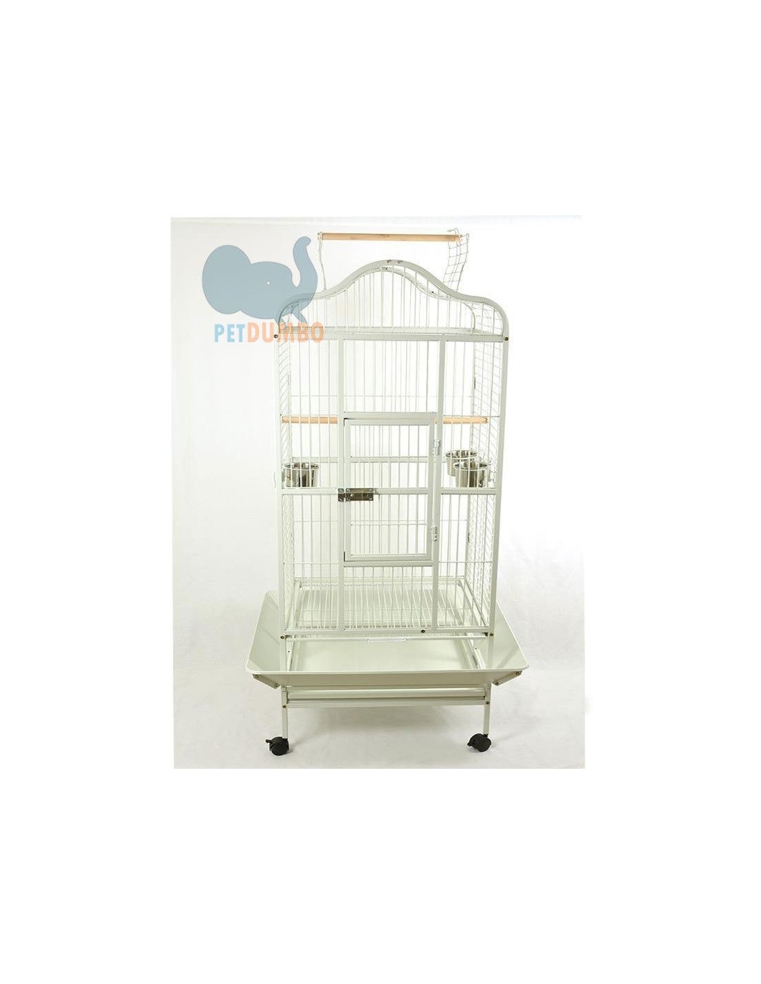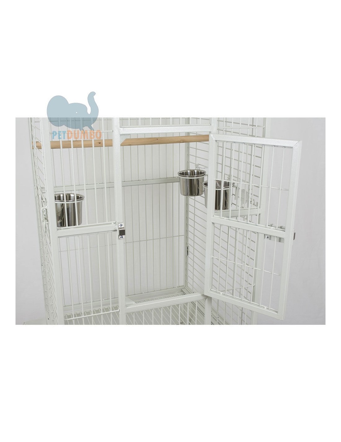 Sul lato frontale si trova una porta robusta di grandi dimensioni (25x46 cm.), che permette al volatile di entrare ed uscire comodamente dalla gabbia e al proprietario di organizzarne l'interno con facilità. La porta si chiude con una serratura di sicurezza a scatto.