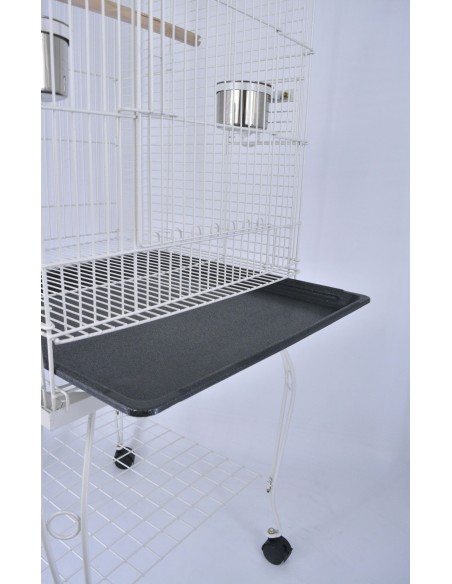 La pulizia della gabbia è facilitata dal fondo estraibile, realizzato in materiale plastico molto resistente. Il fondo viene tirato fuori facendolo semplicemente scivolare verso l'esterno, e, una volta reinserito, un blocco di sicurezza impedirà che il vostro pappagallo lo possa spostare.