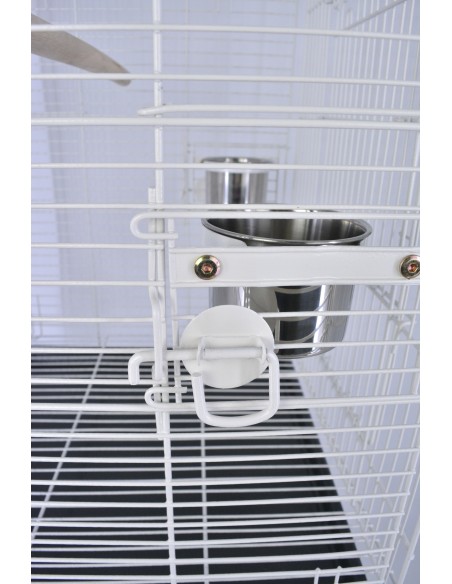 La parte superiore della gabbia può essere tenuta chiusa o aperta e fungere da trespolo inserendo nell'apertura l'apposito posatoio.