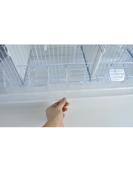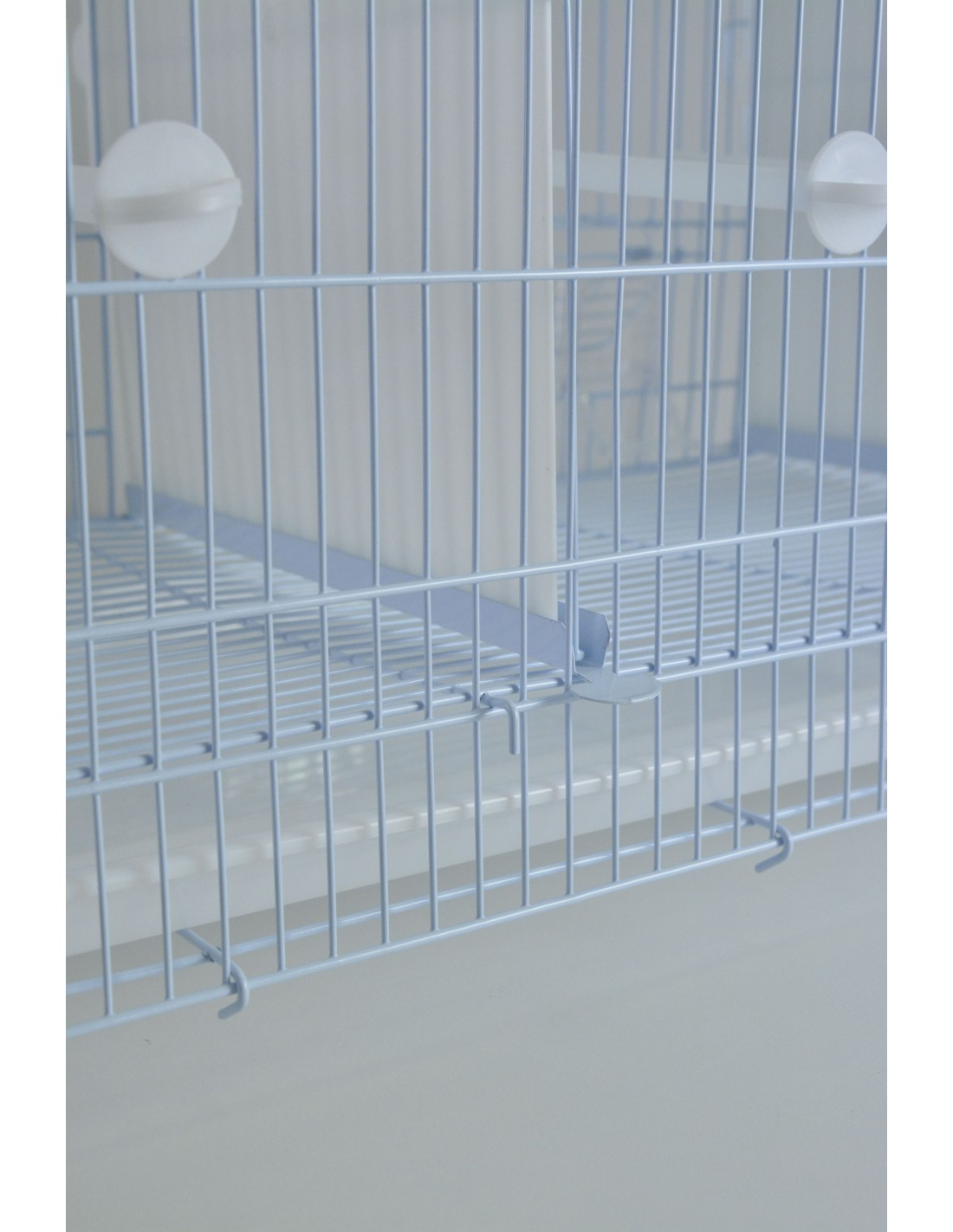 Accessori: la gabbia include 2 griglie divisorie amovibili come i 2 pannelli in pvc per non consentire ai volatili di vedersi, una griglia sul fondo, un vassoio estraibile, 6 posatoi e 6 mangiatoie.