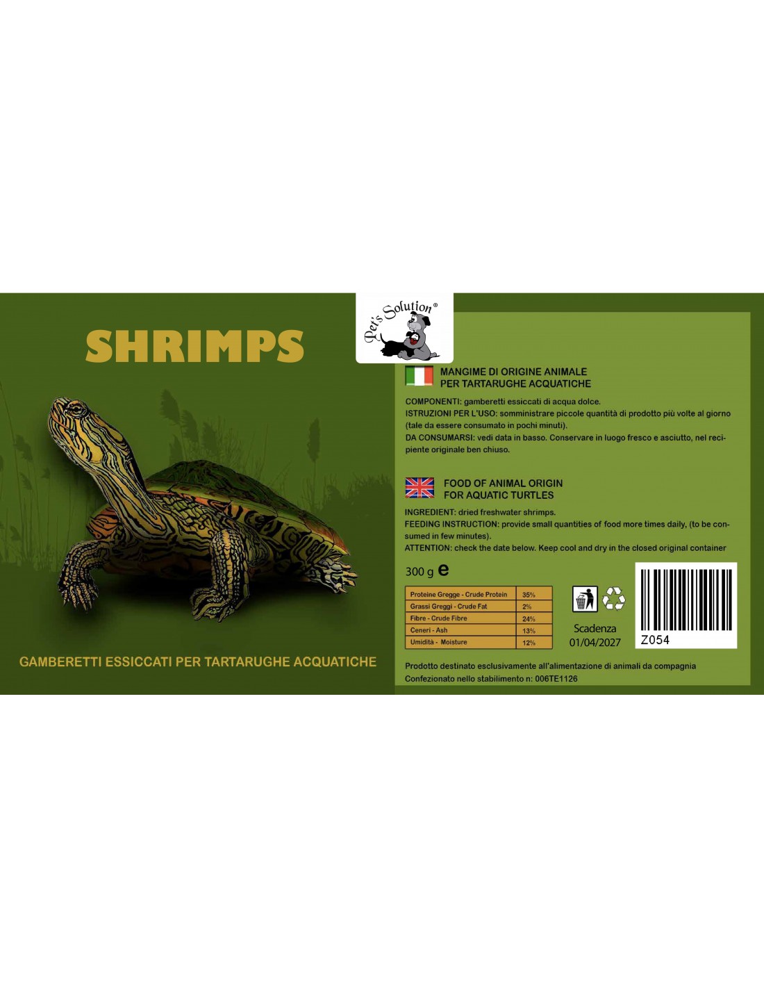 -Gamberetti Interi Essiccati: 300g di deliziosi shrimps essiccati e setacciati per garantire un'alimentazione pulita e salutare alle tartarughe d'acqua, ideale per esemplari di età adulta.